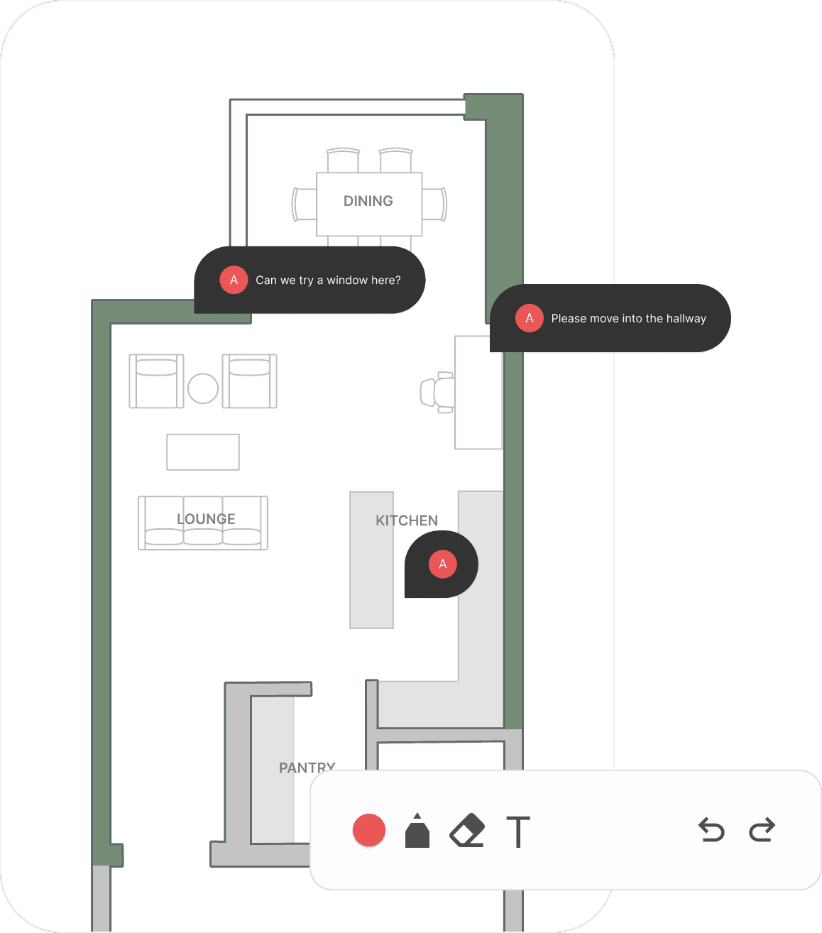 Clients can open drawings and documents directly, highlight sections and leave comments in real time.