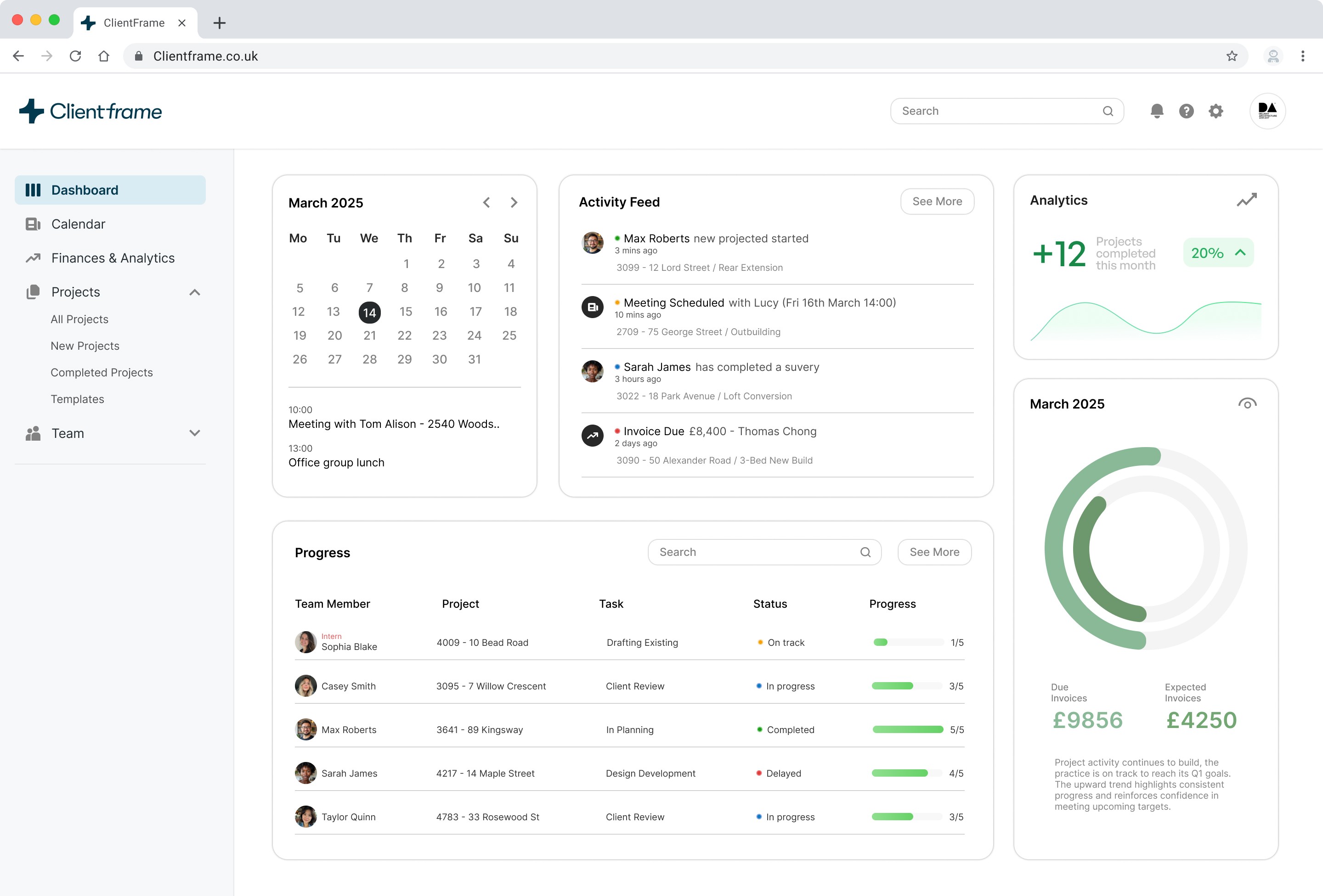 Built on a smart, personalised portal that streamlines communication, file sharing, invoicing and project visibility.